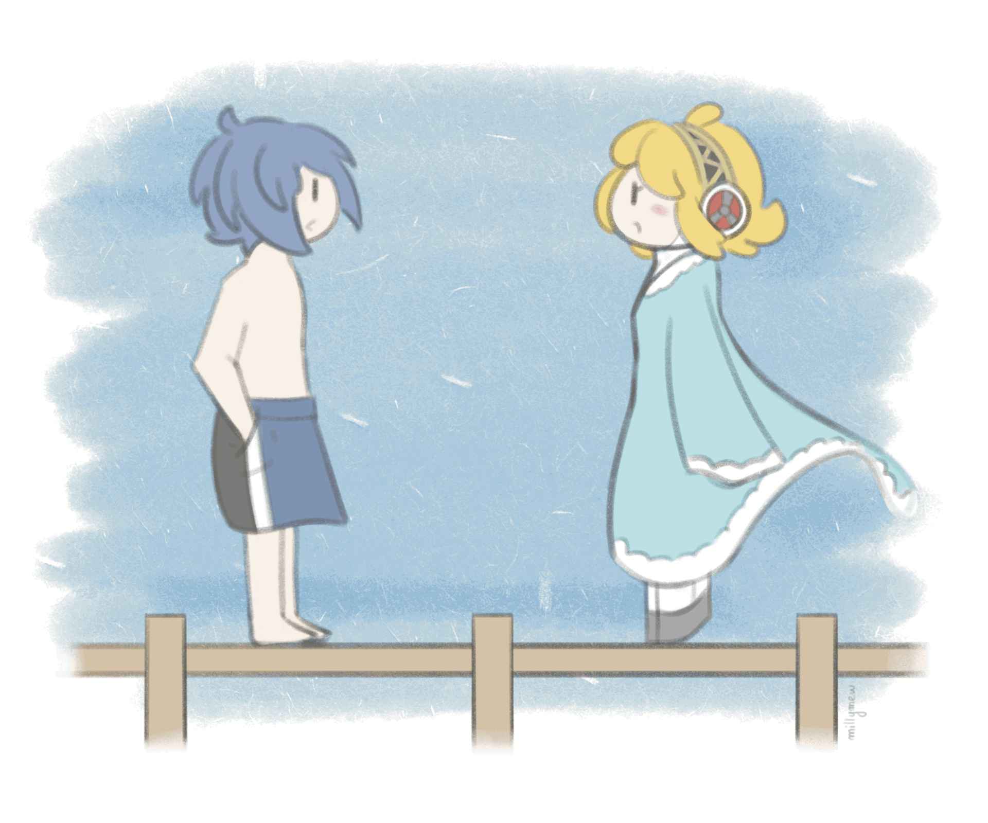 Mon style artistique se caractérise majoritairement par ses couleurs pastels et son atmosphère douce, inspiré par divers médias comme les dessins-animés, jeux-vidéo, l'Art traditionnel et les illustrations Jeunesse❯ Vous pouvez me contacter via :